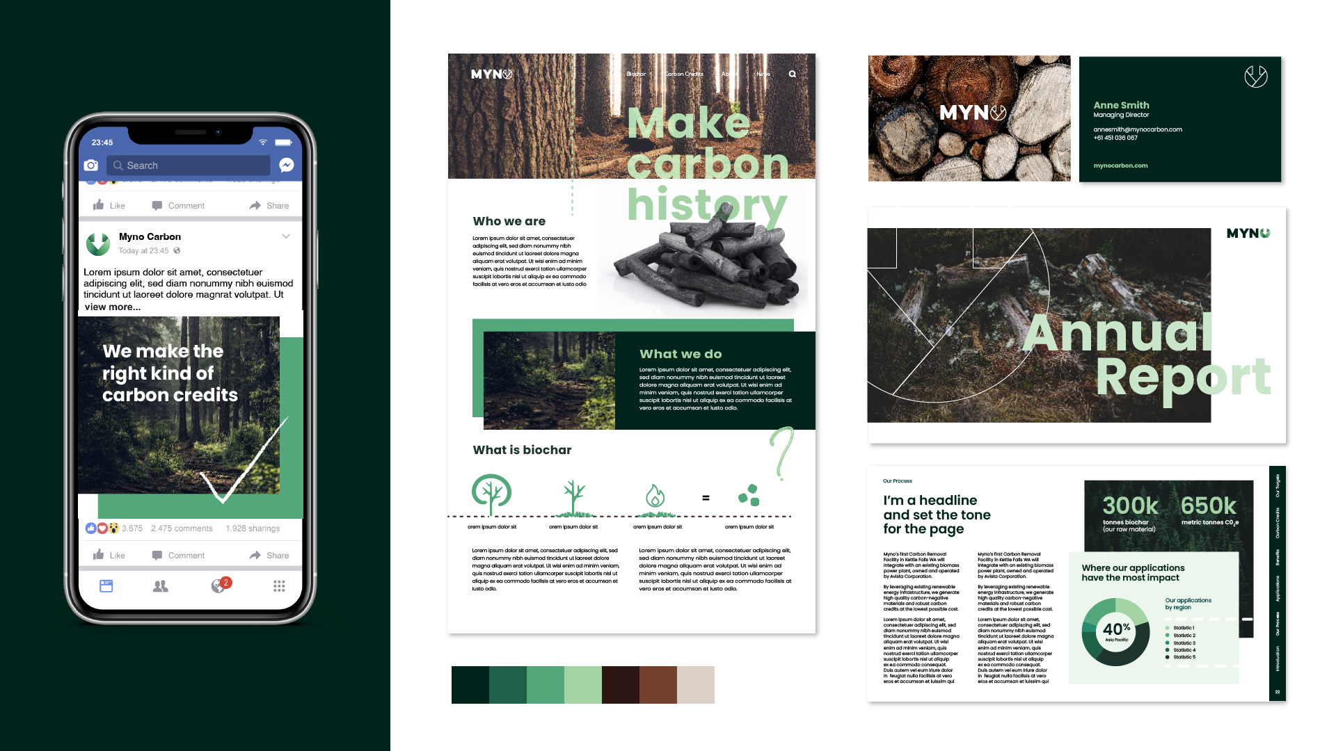 Myno was a newly created Biochar company based in the USA. They worked with the team South Pole to determine their brand positioning Make Carbon History and now needed a new brand to match.